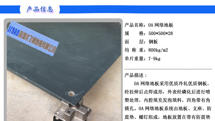OA智能化架空活動地板(OA500) 【型號規格】 OA500×500×28 mm 【產品概述】 OA500智能化全鋼架空活動地板采用優質鋼板經拉伸成型、點焊、...