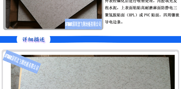 全鋼防靜電地板 【規格型號】 600×600×35mm 【產品概述】 全鋼防靜電活動地板采用上海寶鋼集團優質合金冷軋鋼板,經拉伸后點焊成形。外表經磷...