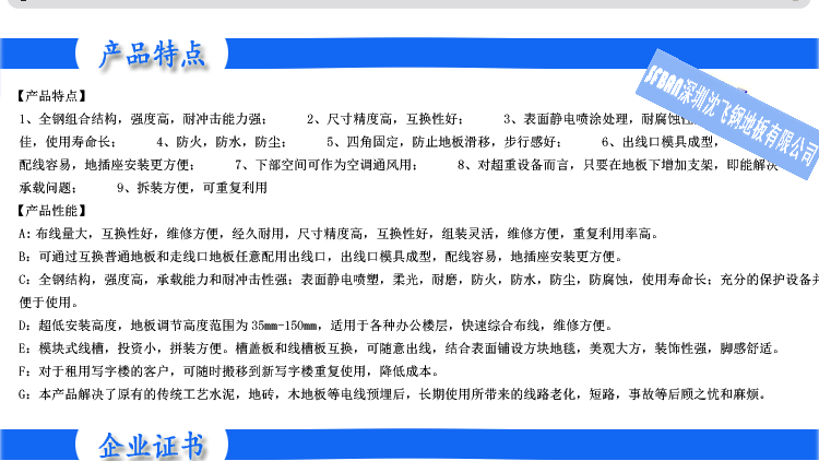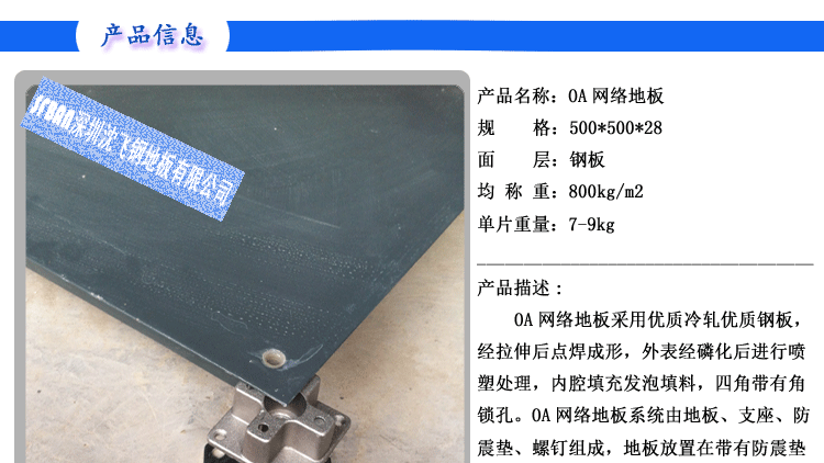 OA智能化架空活動地板(OA500) 【型號規(guī)格】 OA500×500×28 mm 【產(chǎn)品概述】 OA500智能化全鋼架空活動地板采用優(yōu)質(zhì)鋼板經(jīng)拉伸成型、點(diǎn)焊、...